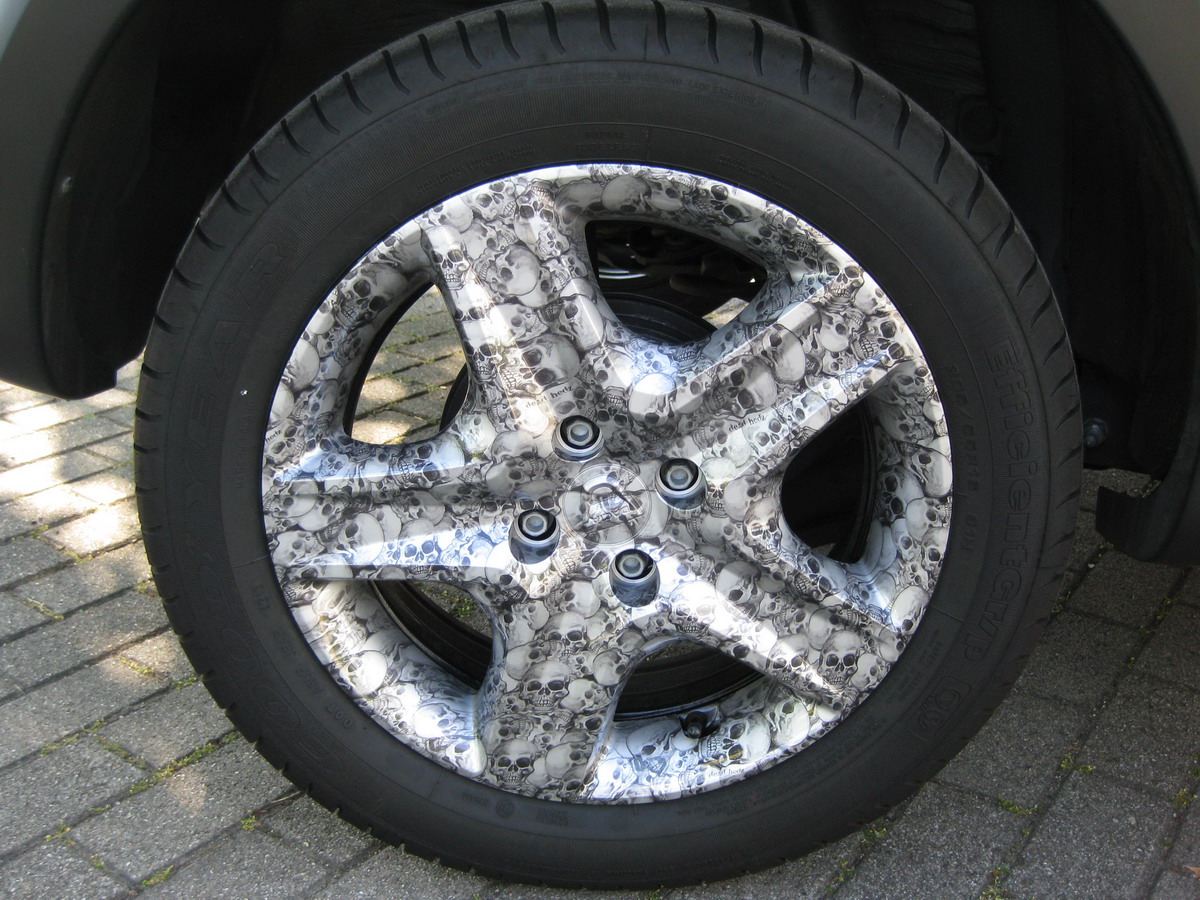 Die Radkappen mit Wassertransferdruck bearbeitet: